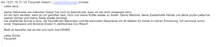 Body-Mind-Detox-Retreat zu besuchen. Meine erste große Reise, die um die halbe Welt ging, um am Ende bei mir selbst anzukommen. Du und Michael habt mir eurer bereichernden und heilenden Arbeit eine