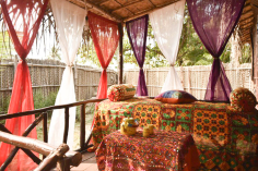 Das "Jambudvipa Eco Resort" ist ein mit viel Liebe geführtes familiäres Erholungsparadies. Es liegt am südlichen Ende von Arambol/Goa, 50m entfernt vom Indischen Ozean, nur getrennt durch einen Hain von Kokospalmen von den Wellen des Meeres. Es gibt einen Yoga-space, 12 stilvoll eingerichtete Holzbungalows mit großzügig gestalteter Terrasse, ein chillout space und ein öffentliches Restaurant.